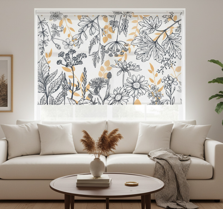 Tenda a rullo soggiorno variazione floreale glamour oro