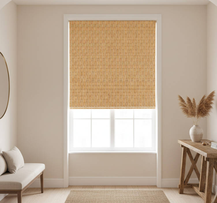 Tende a rullo motivi trama a griglia in vimini naturale